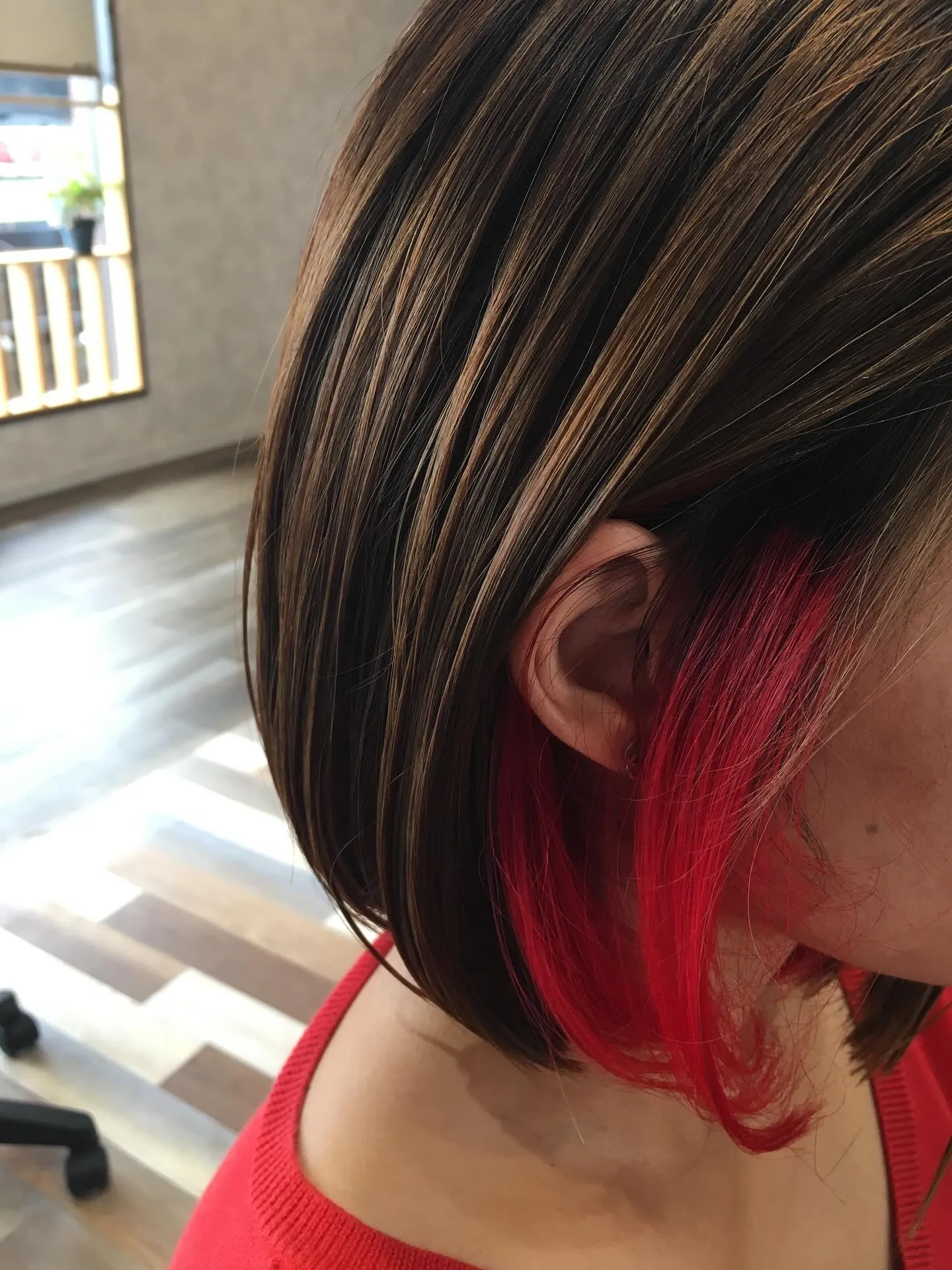 #インナー#インナーカラー#イヤリングカラー#赤#ピンク#パープル#ハイライト#白髪ぼかし#白髪ぼかしハイライト#コントラストハイライト#脱白髪染めハイライト#美容室#美髪#トリートメント#髪質改善#髪質改善トリートメント#上尾市#上尾#白髪染め#リタッチ#オーガニック#キッズ#カット#カラー#ハイトーン#ベージュ#ブリーチ#グレージュ#シルバー#グレー
