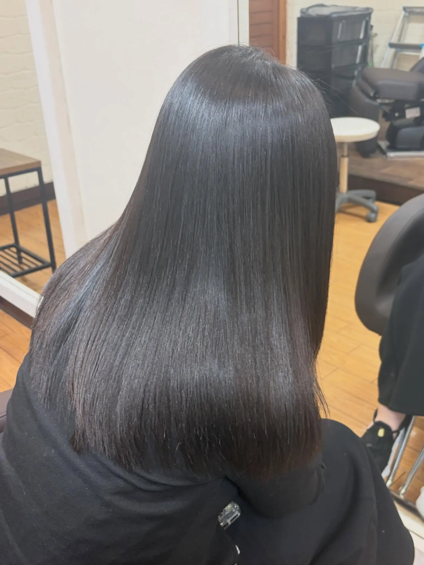 当店の髪質改善縮毛矯正は、ダメージを最小限に抑えながら自然なツヤと柔らかさを叶えます。